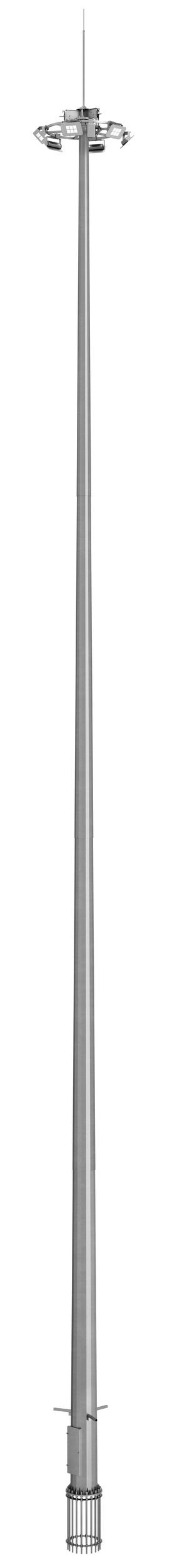 Мачты изготавливаются из высококачественной стали с горячим цинкованием, что обеспечивает их превосходную защиту от коррозии даже в агрессивных условиях эксплуатации. Конструкция мачт рассчитана на значительные ветровые и снеговые нагрузки, что гарантирует их стабильную работу в различных климатических зонах. Механизм мобильной короны оснащен надежной системой блокировки, предотвращающей самопроизвольное опускание, а также защитой от вандализма, что существенно повышает безопасность и долговечность всей осветительной конструкции.